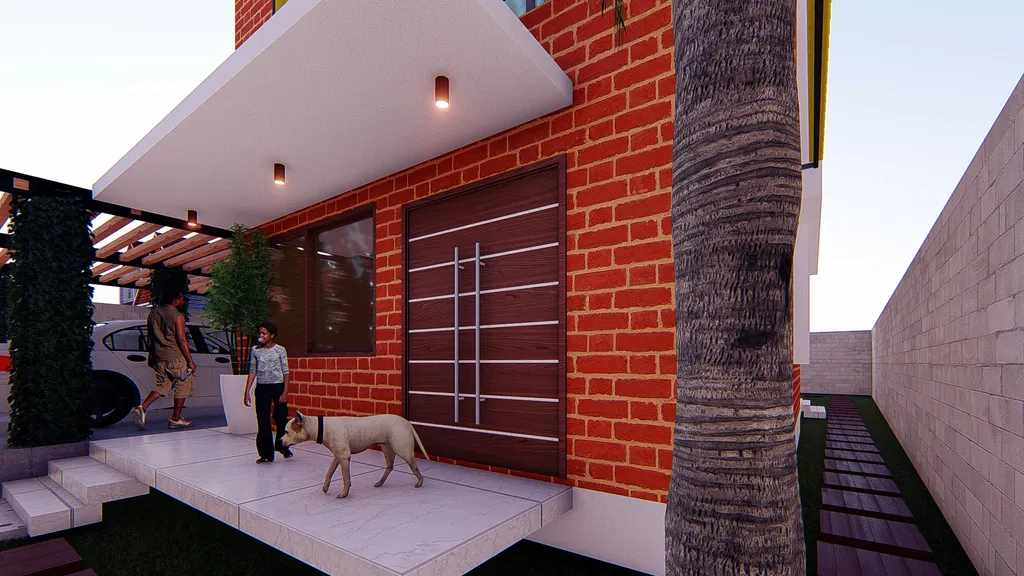 Tropical house is a project designed for a family of 5. It is based on 3 principles: Natural ventilation, natural lighting and thermal insulation. The terracotta brick provides the heat regulation that characterises tropical climates. Its colour also blends in with the dust and red soil on the project site. The large louvered window that covers the staircase is one of the elements that characterise the architecture of Tropical House.